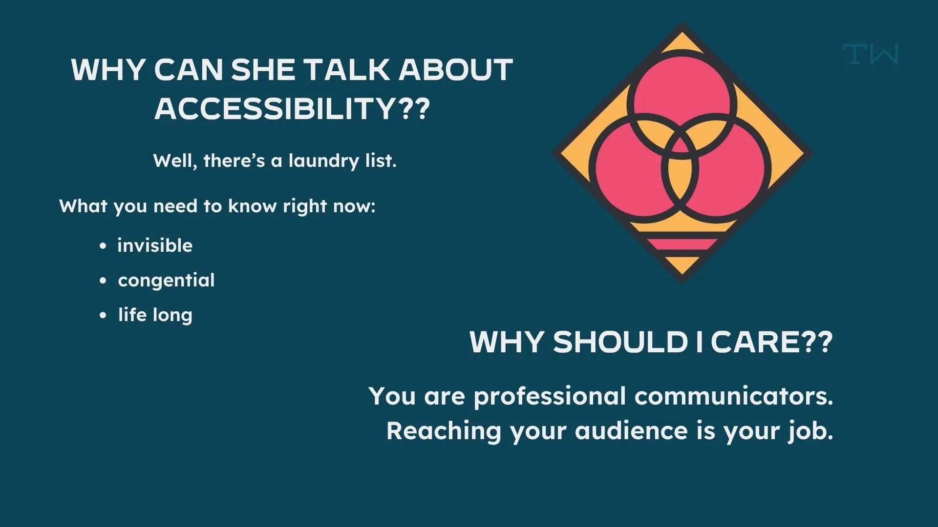 As a disabled woman, accessibility has been a near-and-dear topic for my entire life. From needing accommodations at school to juggling doctors appointments to advocating for better policies and procedures in the corporate world, I’ve had more experience with navigating the complex world of access than many other people my age.